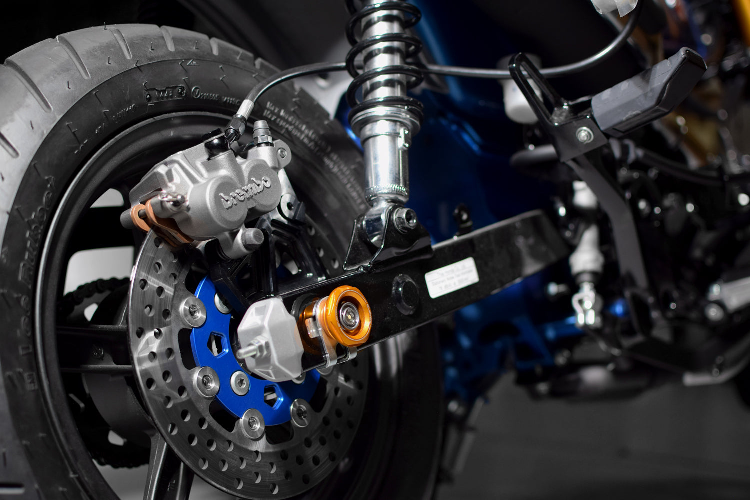 エヴァテック(EVATEK)のホンダ(HONDA)DAX125専用のリアキャリパーサポートと片押し2POTブレンボキャリパー(P/No,22.9830.41)を揃えれるパッケージです。