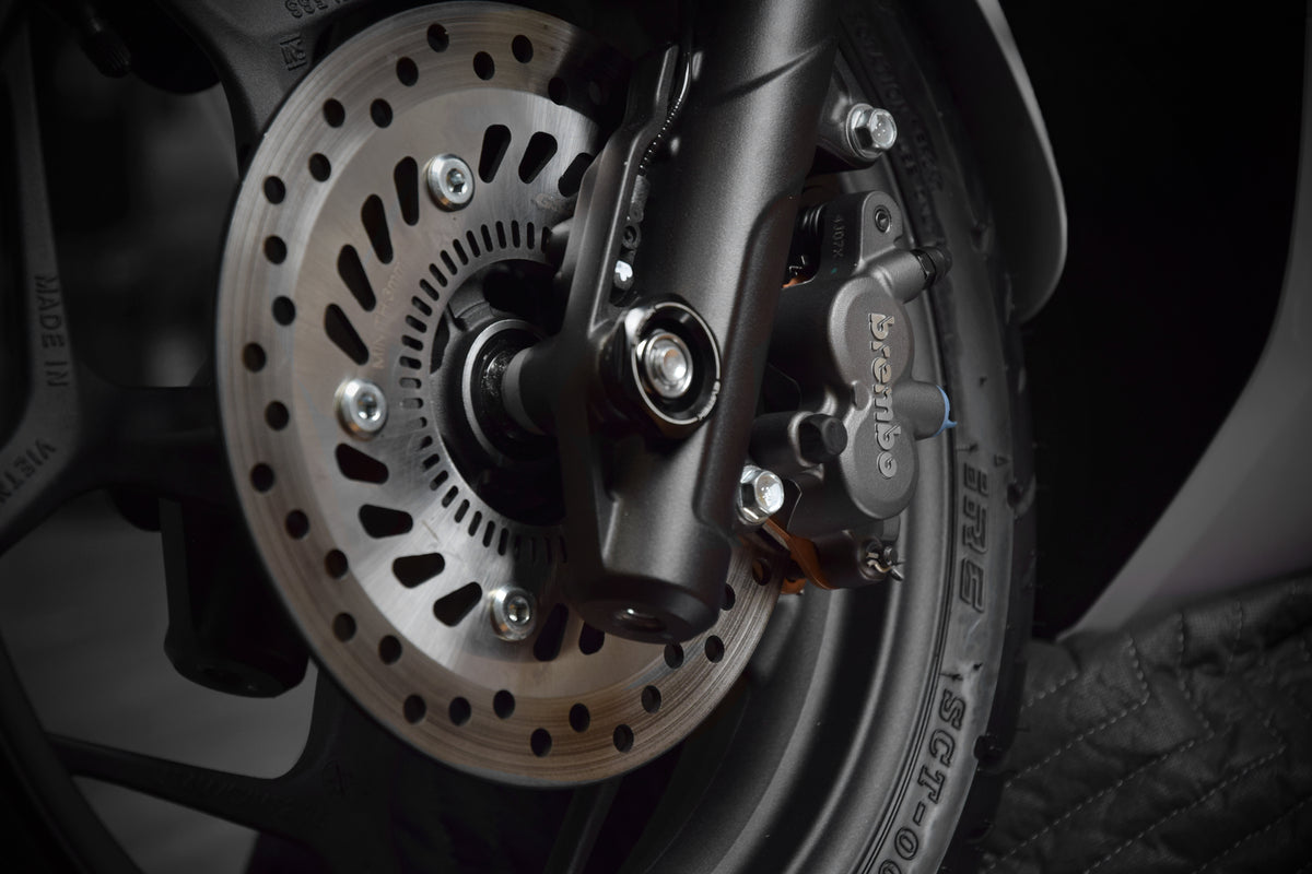 エヴァテック(EVATEK)のホンダ(HONDA)PCX(JK05)専用のフロントキャリパーサポートと片押し2POTブレンボキャリパー(P/No,22.9830.41)を揃えれるパッケージです。