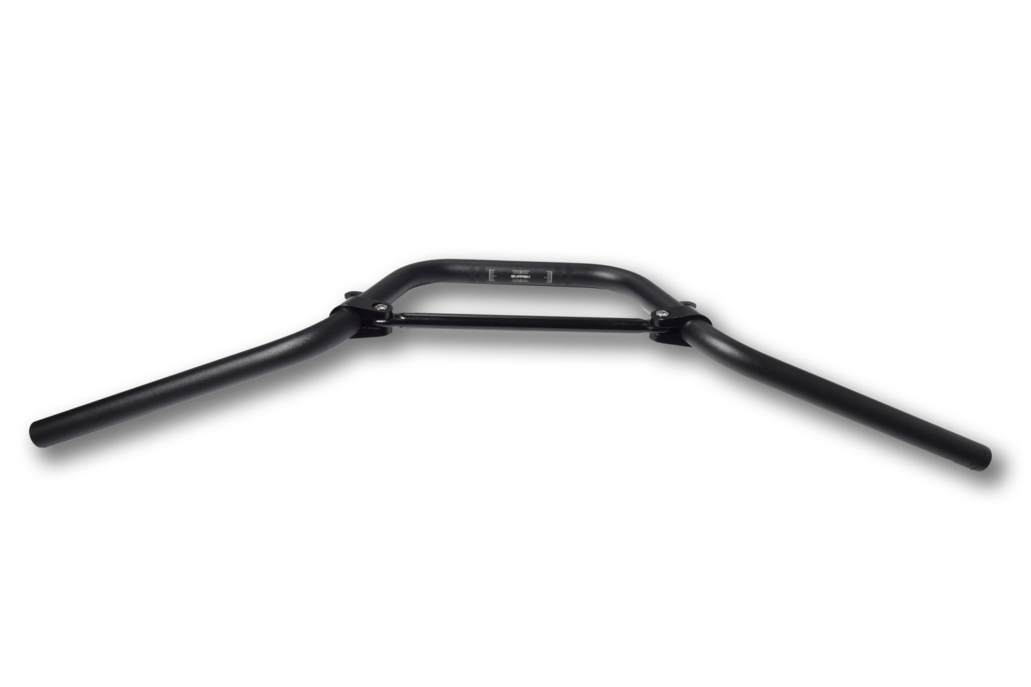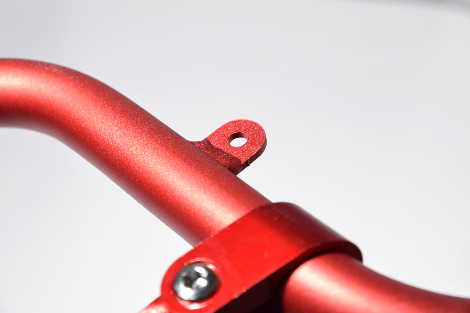 ハンターカブにボルトオン設計された軽量アルミバーハンドル。