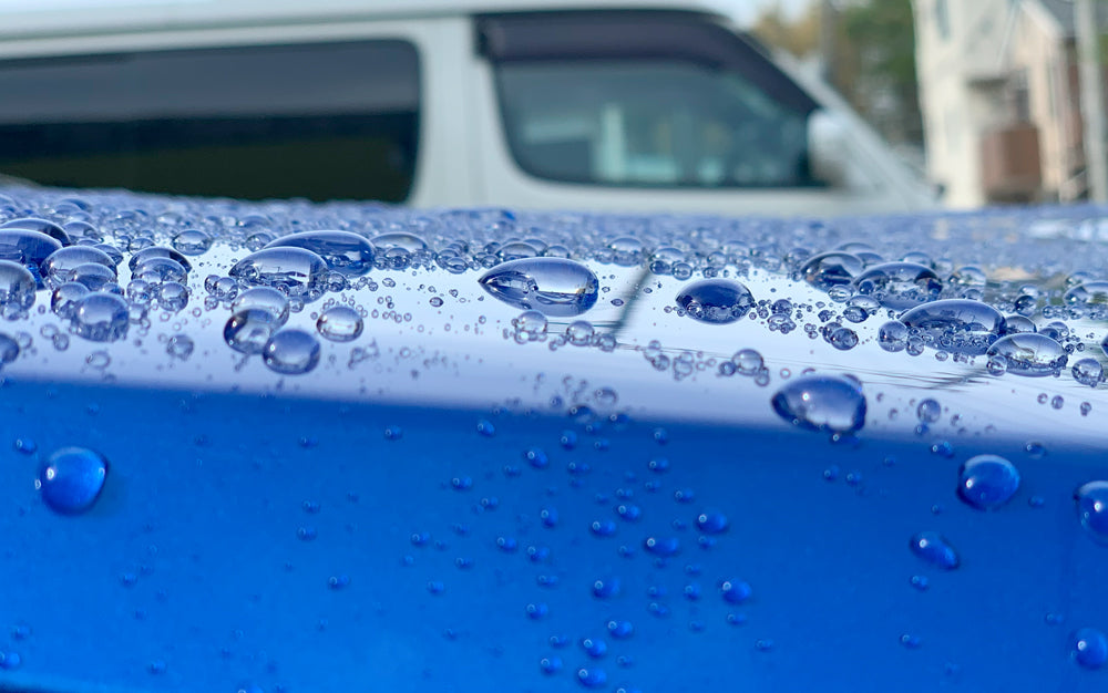 洗浄後すぐに撥水し、持続する保護皮膜を形成します。シリコン成分を極限まで減らしたことで、洗車後に起こる雨染みや水垢汚れが起こりにくく、クリアな撥水効果が得られます。