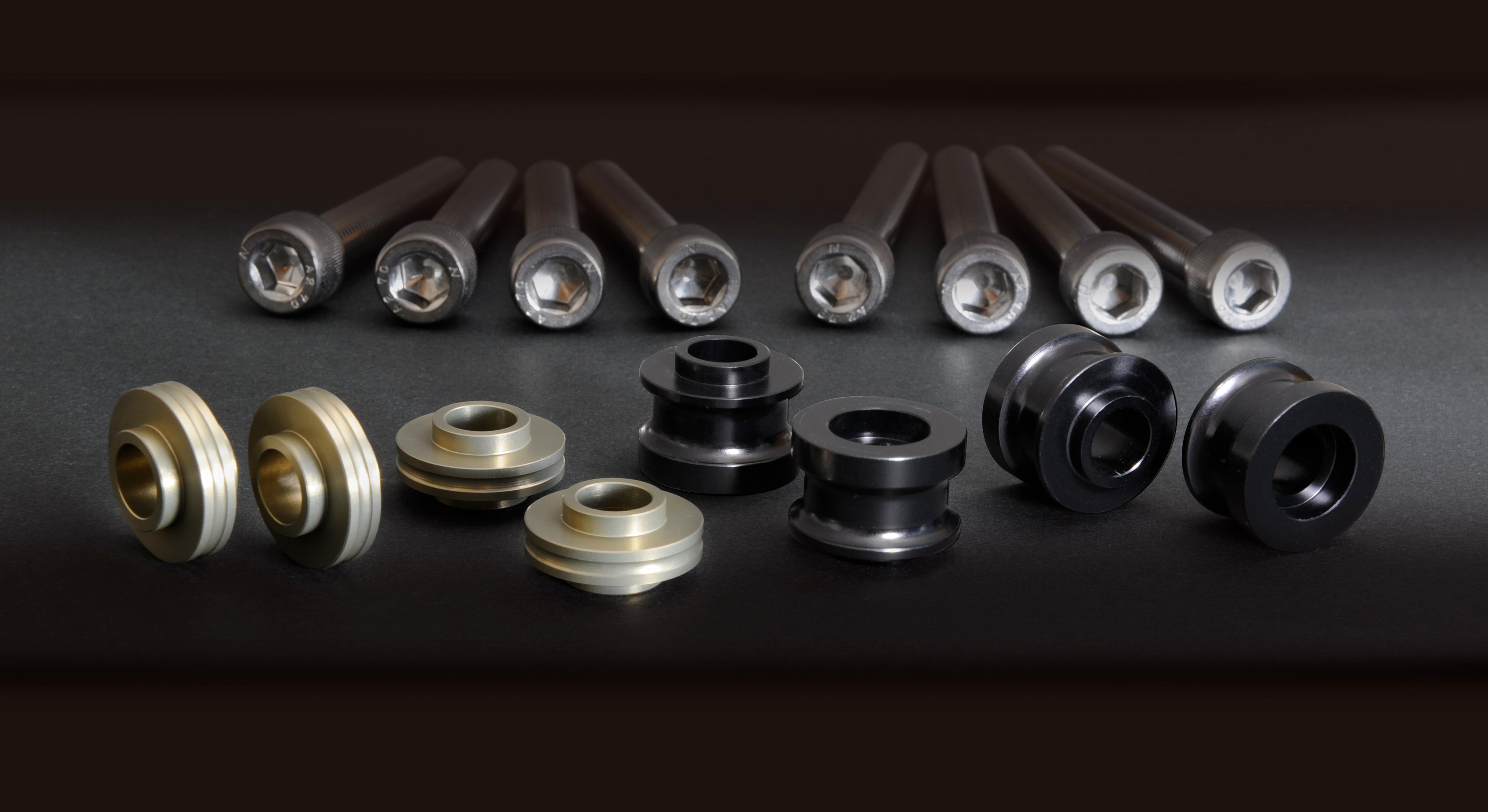 ブレンボのラジアルマウントキャリパー 108mmピッチを取り付ける際に高さ調整をするために必要なオフセットカラーとSUSキャップボルトの車種別キットです。